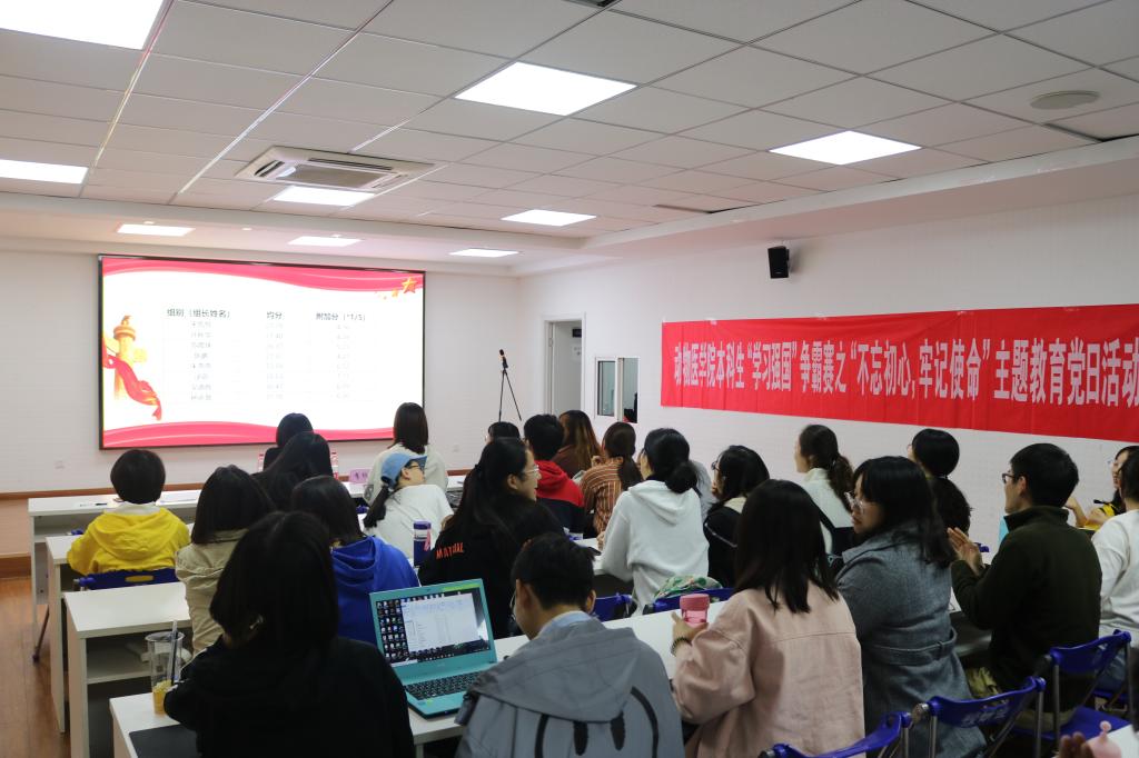 比赛伊始,在支部书记的带领下,本科生全体党员重温入党誓词,重温共产党员的初心和使命,并公布了10月15日-11月13日,组内成员“学习强国”日平均积分。