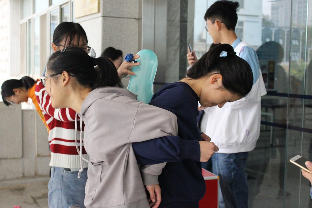 本次比赛分为上午下午两场,分为乒乓水上漂、指压板上的头脑风暴、背对背挤气球及快手夹弹珠四个环节。丰富的比赛考验了选手的知识储备量、平衡应变能力与团队配合度。参赛队伍在工作人员的安排下,有序而不失活泼地参与到比赛当中。不论是上午还是下午,参赛选手都能够全身心地投入到快节奏的比赛当中,享受竞赛时光。经过一天的比拼,共有六组同学在60多组选手中脱颖而出。