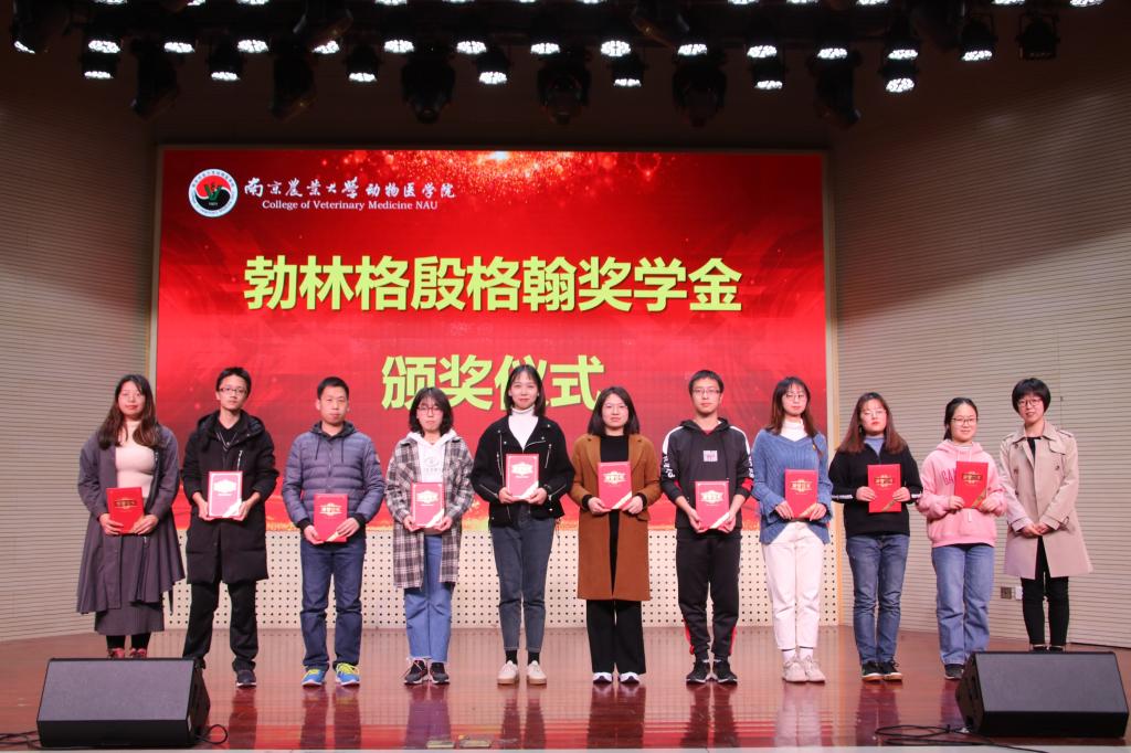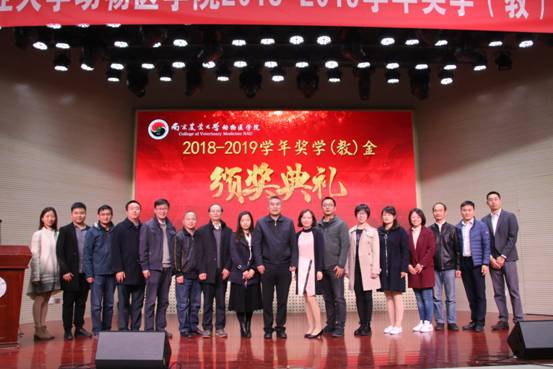 接下来是颁奖环节,分别由各设奖单位代表宣读获奖名单并进行颁奖。奖项依次是“蔡宝祥”奖学金、诗华奖学金、禾丰奖学(教)金、硕腾奖学金、上海申普奖学金、南农高科奖学金、金诺诊断奖学金、勃林格殷格翰奖学金、恒丰强奖学金、新希望六和奖学(教)金、和平小动物奖学金、武汉回盛奖学(教)金。期间张创贵先生、杨燕女士、郭一珉先生、方磊先生、涂雨婷女士、程明静先生、刘彦超先生依次代表设奖企业发言,除感谢南农为企业培养优秀人才之外,也对同学们提出成为优秀动医人才的要求与期冀。