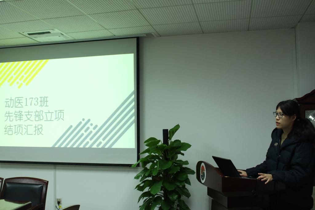 逯萌同学则提出要让积极分子参与班级建设,开展了“医帮禽兽”及其2.0的特色项目,先理论学习后进行实践,活动后参与人员既学习了相关知识,又学会了猫狗取样、实验室检验等。钱佳瑜同学以“仰望星空,脚踏实地”为主题,分享了他们的特色项目“医”入人心,对小动物的常见疾病进行预防及治疗。李佳默同学以“国.宝”为主题,一语双关,以了解保护动物为主,开展国家保护动物画报等内容。