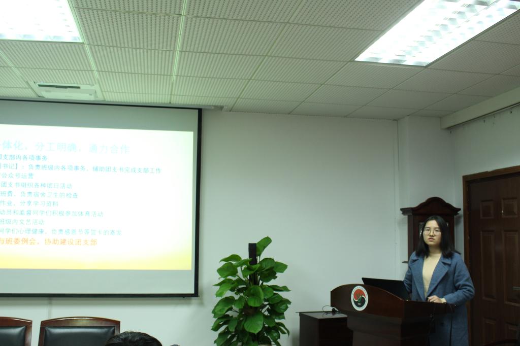 高年级优秀团干部代表,围绕机制建设、学风建设、文化建设以及每个支部的特色项目四个部分展开分享。