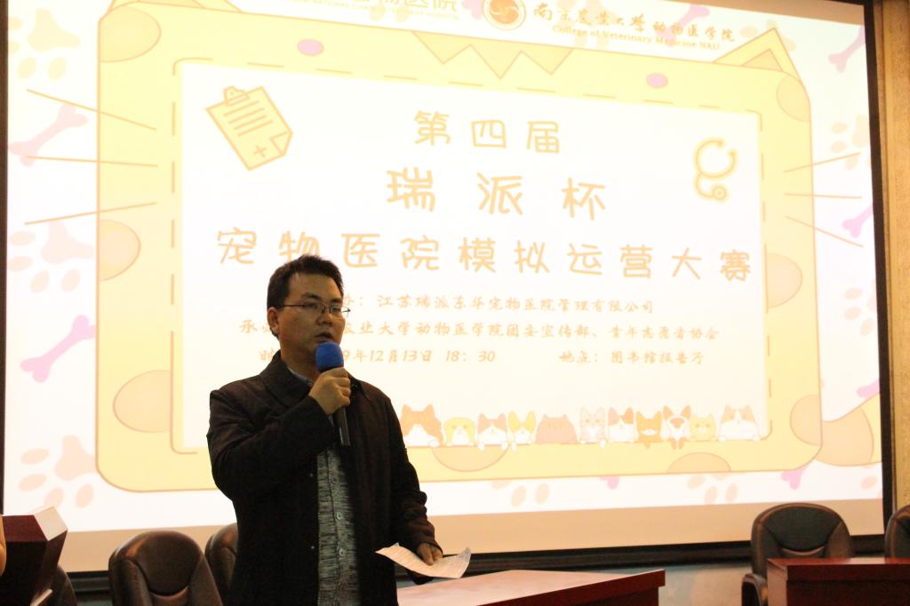 12月13日晚,WilliamHill中文官方网站主办的第四届“瑞派杯”宠物医院模拟运营大赛决赛在图书馆报告厅成功举行。出席本次比赛的评委有:江苏瑞派东华宠物医院管理有限公司区域经理裴志新先生、院长马媛媛女士,william威廉中文官网学工处就业指导中心周健鹏老师,团委创业促进部魏威岗老师,食品科技学院陈宏强老师,WilliamHill中文官方网站辅导员徐刚老师。
