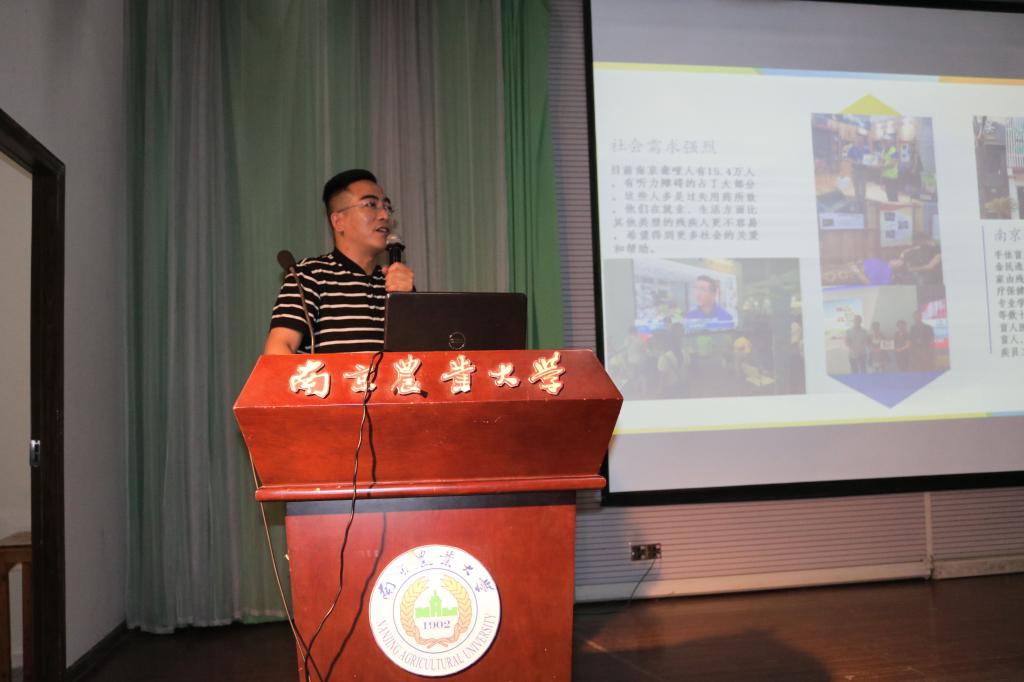 讲座开始前,金洁南介绍了南农大的志愿活动,并呼吁同学们珍惜这次主题团课的机会,从中受益。刘强老师做了简短的自我介绍后,就介绍了他所联合创办的南京明心和宁馨阳光家园。二者作为社会性公益组织,从创始到发展壮大,历尽艰辛,最终站在大众的视野里,成为公益行业的领先者。回忆起创办孤独症儿童教育机构的初衷,他说是因为亲戚孩子患了孤独症才萌生了从事公益事业的想法,逐渐产生了热情和信心,并最终坚持到现在,成为了行业中的佼佼者。