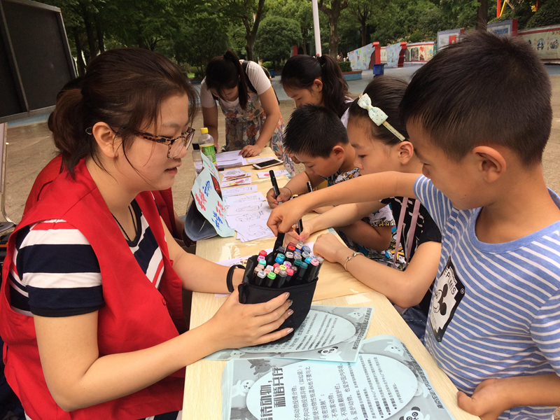 宣传组以海报展示和讲解为主,向游客宣传动物园内不文明行为的危害,与动物保护相关法律法规,及与动物保护相关的知识。通过发放宣传单、卡通动物填色、折纸等游戏环节,让家长和小孩减少不文明行为,真正做到保护动物。