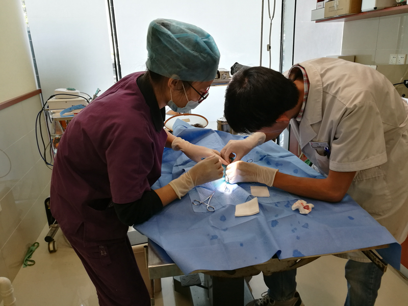 团队成员在医院的统一培训下,对宠物医院的组成、运作、管理、规定与企业文化有了初步了解之后,学习常用设施的使用方法和注意事项,熟悉宠物(主要为犬猫)的常见疾病与诊疗实践具体过程、常用药物对应的症状和病因以及手术中的各种操作等。之后,并在各自岗位上开展实习,工作内容包括:维持医院环境卫生、前台导诊、跟诊、观摩手术、住院宠物的护理、协助医生使用B超仪和拍摄X光机、化验等多项工作,掌握了患畜的病历档案的建立、保定、注射、输液、测体温、洗耳朵、剪指甲等重要技术,不仅积累了临床经验,也让对宠物行业运营模式及其发展有了更加直观的认识。