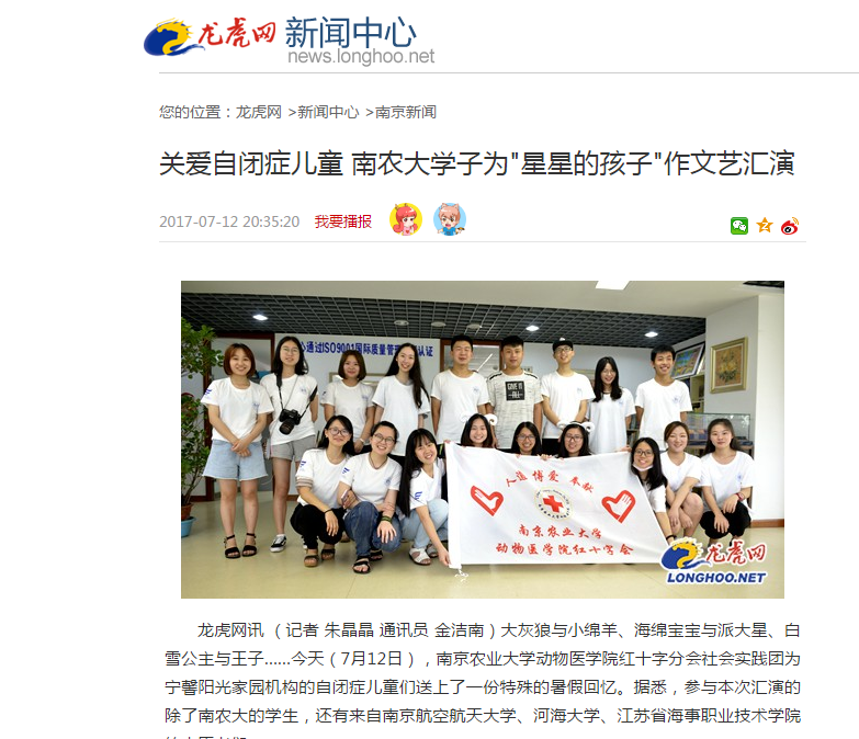 2017年7月,WilliamHill官网“点亮星灯——关爱自闭症儿童”暑期社会实践团队,在南京市宁馨阳光家园和南京多地开展了为期十余天的社会实践活动。项目活动包括各式各样的授课、手工制作、文艺表演活动等志愿服务活动,以及线上线下调研、宣传和采访活动。