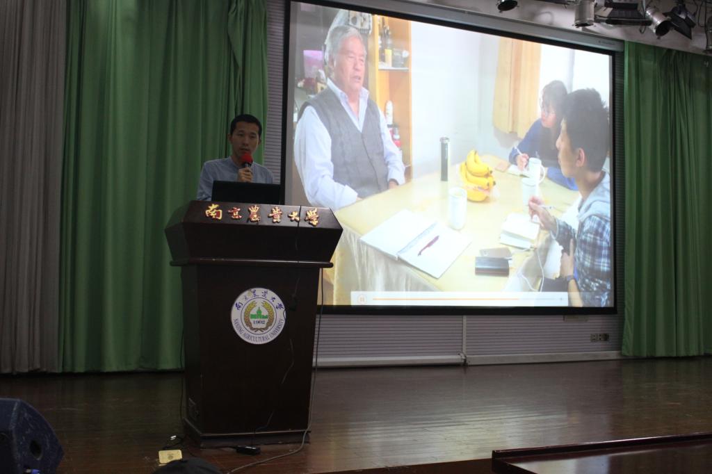 随后,邓世宇、王宁宁、张微、陈楷文、臧琦铭5人分别分享了老先生祝寿康、陆天水、侯加法、蔡宝祥、邹思湘的成长故事。邓世宇通过“老顽童先生、绅士先生、耐心先生”三个小故事向同学们展现了一个和蔼和亲、平易近人的祝寿康老师;王宁宁详细的描述陆天水老师的求学、科研等内容,尤其介绍了其在水牛研究领域做出的重要贡献;张微详细介绍了侯加法老师读书时期和教学时期的经历,着重介绍了当时教学设备简陋老师亲自备课,并且还介绍了当时的投影仪和幻灯片;陈楷文介绍了蔡宝祥老师在克隆N79株鸡新城疫弱毒疫苗等做出的杰出贡献,此外还展示了蔡老师的很多具有纪念意义的照片;臧琦铭围绕“没有学位证,依旧是大师”,详细介绍了邹思湘老师学习、教学、实验和退休等经历,尤其介绍了其在新生仔猪肠道被动免疫转移实验和安装永久瘤胃瘘管做出的贡献。
