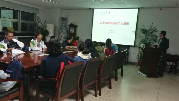 熊富强书记以william威廉中文官网的校训作为敲门砖,开始了“大学校训文化与大学生成长”的研讨课程。南农的校训“诚朴勤仁”,诚朴来自中央大学,而勤朴则来自于金陵大学,显示出深厚的历史底蕴。在此期间熊书记讲述了各大高校校训的来历和寓意,而又由校训的教育意义,引出大学的意义,同时与同学们交流上大学的原因以及希望在大学里的收获,引发同学们思考。最后,熊书记用林觉民的例子,勉励大家,要成为一个有目标、有信仰的、积极向上的大学生。熊书记在与同学们的互动中循循善诱,使同学们更加深刻地了解到自己的学校、自己的专业。
