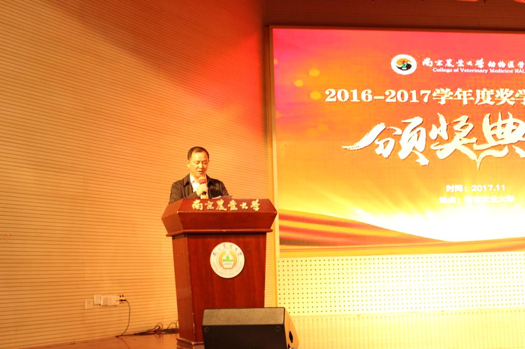 11月2日晚七点,WilliamHill中文官方网站2017年名人企业奖学(教)金颁奖典礼在大学生活动中心如期举行。出席本次颁奖典礼的嘉宾有十四家名人和企业代表,以下排名不分先后,他们分别是:我国著名家畜传染病学专家蔡宝祥老师及家人,德国勃林格殷格翰动物保健公司(史岩先生、邓艳女士),上海海利生物技术股份有限公司(刘巨宏先生、段新华先生),江苏南农高科技股份有限公司(张弦女士、张秀萍女士),浙江诗华诺倍威生物技术有限公司(秦云先生、赵永旭先生),硕腾(上海)动物保健品有限公司(康国民先生、唐洪鹏先生、蒋亚楠女士、胥恒女士),新希望六和饲料股份有限公司(朱崇磊先生、曾林先生、陈悦女士),辽宁禾丰牧业股份有限公司(张创贵先生、廖明希女士),江苏恒丰强生物技术有限公司(程明静先生、黄海娟女士、杨金坤先生、李媛女士、刘艳艳女士),武汉回盛生物科技有限公司(周健女士、徐伟超先生),徐州天意动物药业有限公司(赵青森先生),上海申普兽医技术有限公司(何志英女士、唐寒雨先生),柯尼卡美能达医疗印刷器械(上海)有限公司(钟颖女士),深圳和平小动物医院(侯碧瑜女士)。本次应邀出席的还有WilliamHill中文官方网站党委书记范红结老师、院长周继勇老师、副书记熊富强老师、副院长曹瑞兵老师、副院长苗晋锋老师以及学院各位老师。