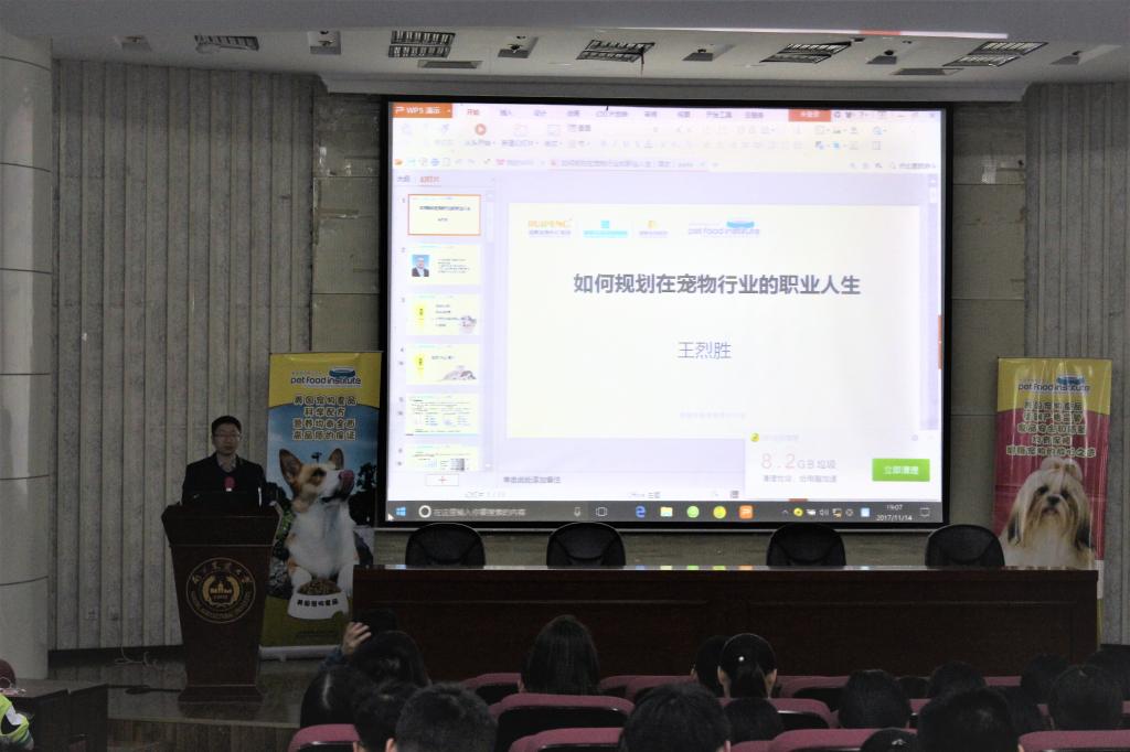 11月14日晚七点,美国宠物食品协会宠物医师系列课程第七讲在william威廉中文官网图书馆报告厅如期开展。这次WilliamHill官网有幸邀请到了瑞鹏宠物医疗集团副总裁王烈胜先生为同学们带来关于如何规划在宠物行业的职业人生的精彩讲座。