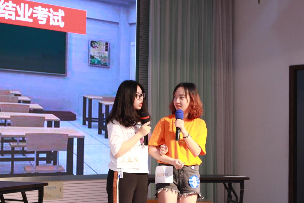 在同学们热烈的掌声中,比赛正式开始。决赛分为PPT展示和两组竞答两个部分,最终成绩由70%的展示分、30%的竞答分数以及10%的初赛平均分三部分组成。PPT展示环节每个组将平常难懂的考研、出国、保研知识以幽默风趣的情景剧展示出来,同学们在欢笑中收获不少有用的知识。两组展示过后,迎来了最激烈的竞答环节。在两组竞答环节中,每组队员或聚精会神思考,或激烈讨论。随着屏幕上时间的减少,台下观众也为选手感到紧张。在十个组全部竞答完毕后,动医院辅导员金洁南老师对十组选手的表现进行点评。