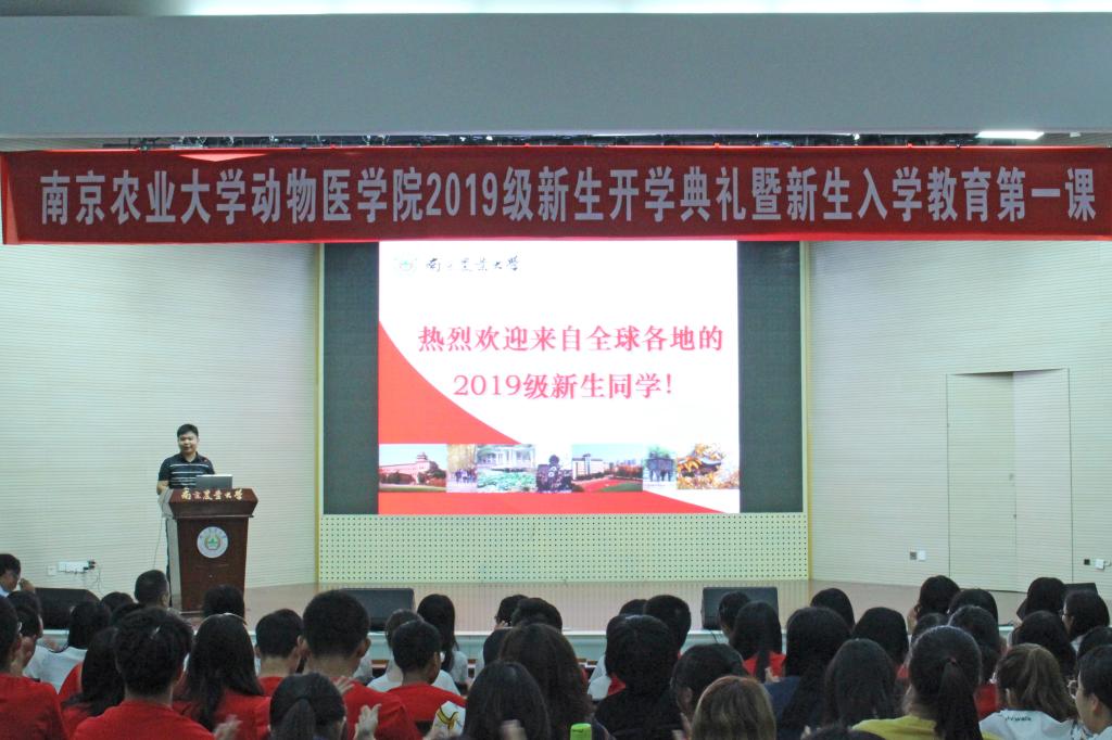 9月26日晚7点,WilliamHill中文官方网站2019级新生开学典礼暨入学教育活动在大学生活动中心顺利举行。参加本次典礼的嘉宾有学院院长姜平、党委副书记(主持工作)周振雷、临床兽医学教授芮荣、学院辅导员及2019级新生。典礼由辅导员徐刚主持。