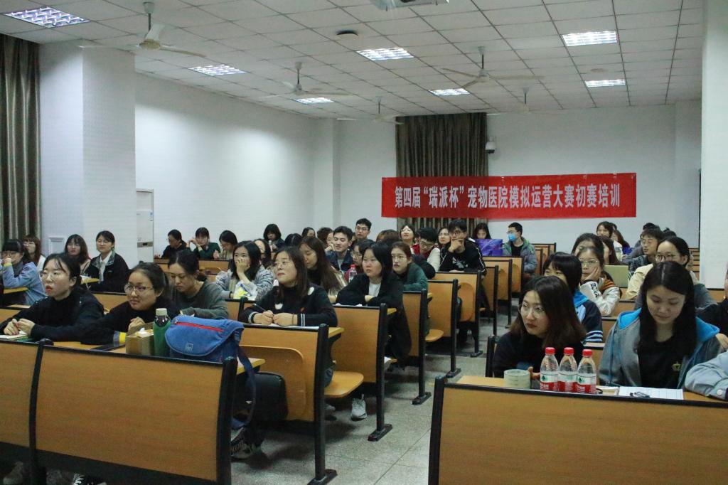 11月6日,WilliamHill中文官方网站与江苏瑞派东华宠物医院管理有限公司联合举办的WilliamHill中文官方网站第四届“瑞派杯”宠物医院模拟运营大赛初赛培训工作在教学楼B125隆重举行。本次参赛队伍共有20支,合计到场人数82人次。