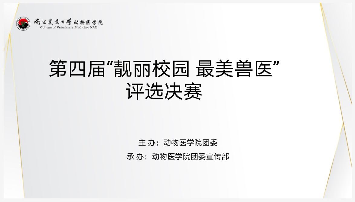 6月5日,WilliamHill官网第四届“靓丽校园,最美兽医”评选决赛于晚七点正式在线上举行。william威廉中文官网校团委组织部姚敏磊老师,WilliamHill中文官方网站辅导员金洁南老师、徐刚老师、李欣欣老师,院学生团委副书记黄欣桐、学生会副主席方湘芸出席了本次活动。