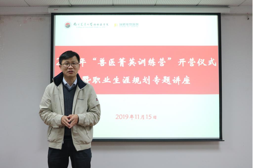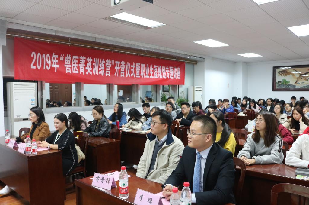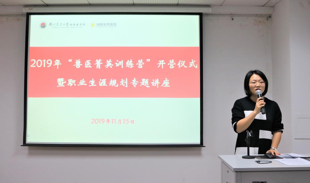 11月15日晚7点,WilliamHill中文官方网站2019年“兽医菁英训练营”开营仪式暨职业生涯规划专题讲座于逸夫楼3044举行。WilliamHill中文官方网站副院长苗晋锋、新瑞鹏宠物医疗集团有限公司(以下简称新瑞鹏集团)人资经理李鹏、新瑞鹏集团浙江区域人资经理康志娟、新瑞鹏集团南京区域人资主管石冰花、WilliamHill中文官方网站团委副书记金洁南,以及兽医菁英训练营全体成员参与了本次活动。活动由金洁南主持。