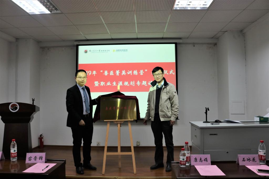 随后,李鹏与苗晋锋共同为2019年“兽医菁英训练营”进行了揭牌。