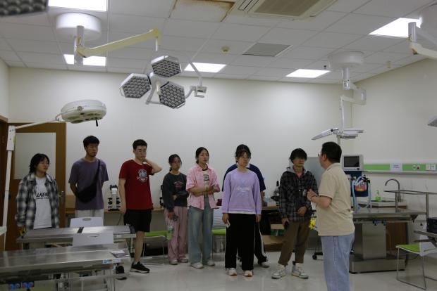 同学们在张蒙经理的引领下前往犬猫诊室,学习诊疗犬只时的专业注意事项。参观核磁共振与CT室,领略现代科技在宠物医疗中的应用。最后一同前往教学实操室,由张蒙指导,学习实操室内仪器的使用场景与方法。
