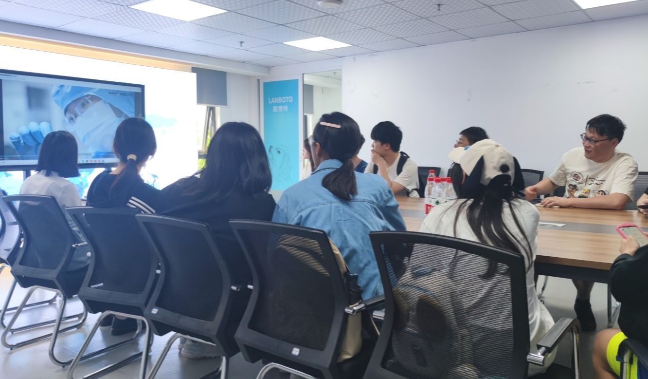 技术总监朱少武详细为师生们介绍了朗博特企业的历史、现状及未来发展规划。他带领师生们参观实验室、介绍实验仪器设备和科研人员的日常工作。在交流环节,同学们提出的关于公司未来发展、研究方向及就业前景等问题,都得到了耐心解答。