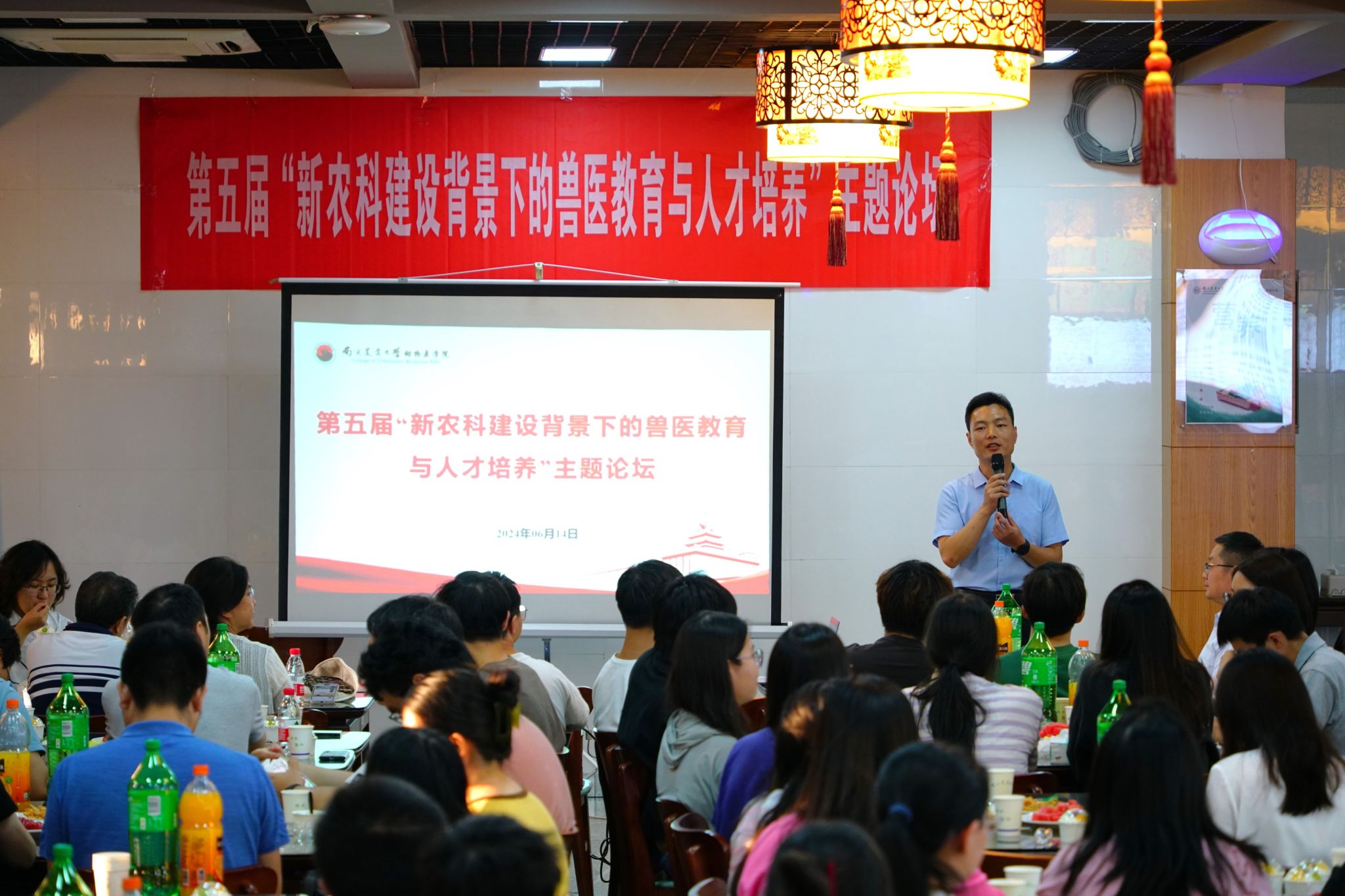 6月14日下午,WilliamHill中文官方网站在教工食堂二楼,开展第五届“新农科建设背景下的兽医教育与人才培养”主题论坛系列活动。学院党委书记姜岩等领导班子、系主任、各专业方向的教师代表,和部分2020级本科生们到场参与。活动由学院党委副书记李云锋主持。