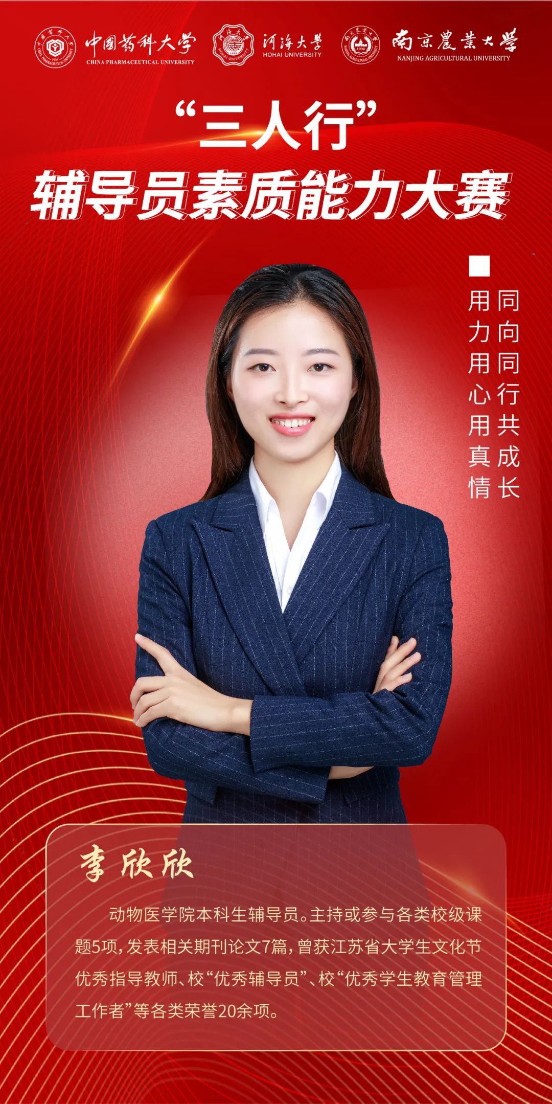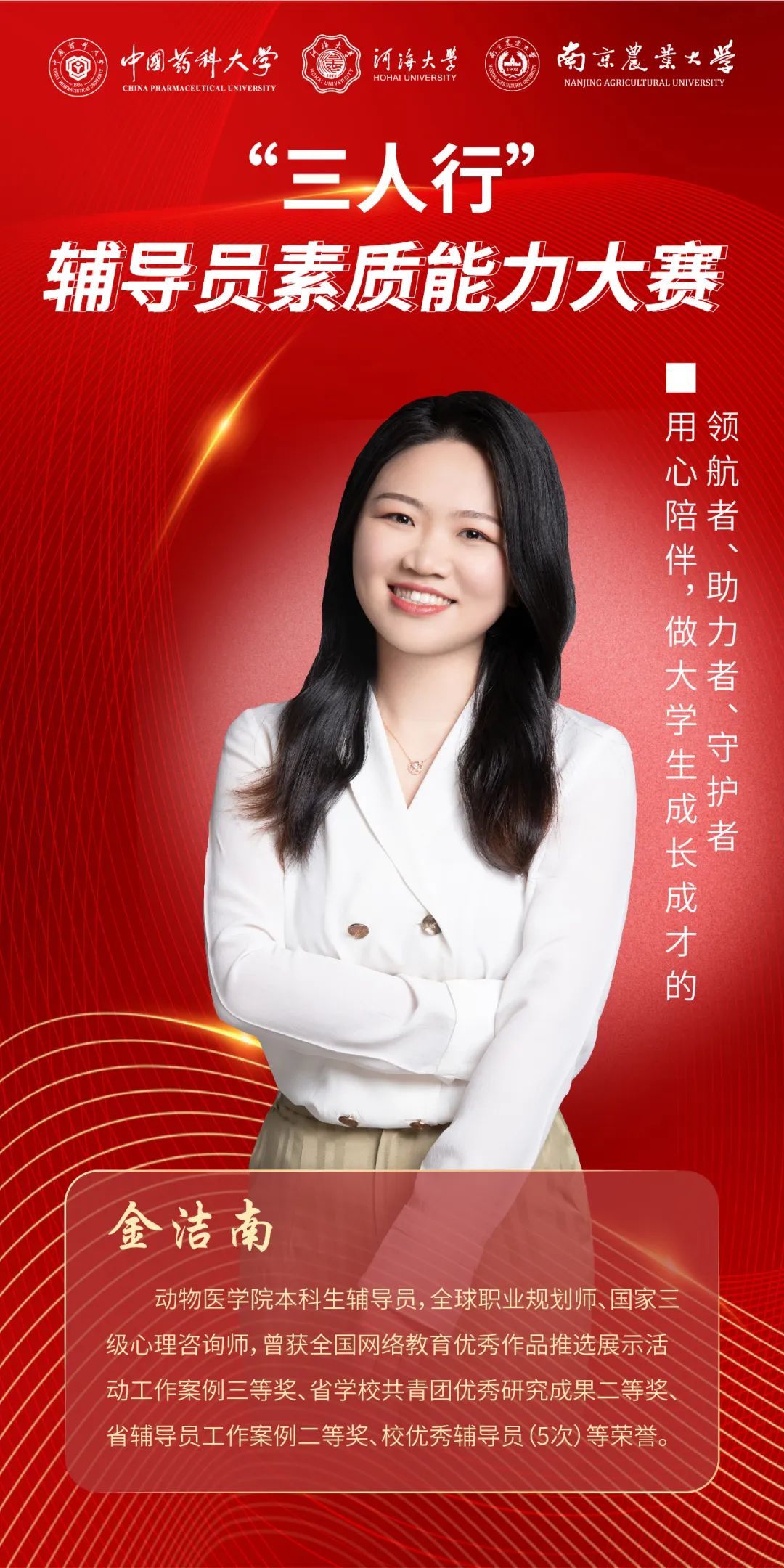 12月7日,由中国药科大学、河海大学、william威廉中文官网共同主办的“三人行”辅导员素质能力大赛如期举行。来自3所高校的12名辅导员经过各自校赛的激烈角逐,脱颖而出进入此次三校联赛。决赛主要包括案例分析和谈心谈话两个环节。经过两个环节的激烈角逐,WilliamHill官网辅导员李欣欣喜获特等奖,辅导员金洁南喜获一等奖!