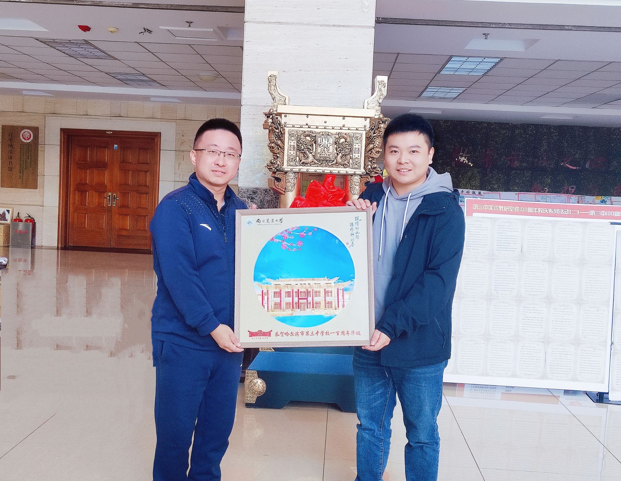 活动当天学校向哈尔滨市第三中学校领导赠送了精美麦秆画文创作为校庆贺礼。哈尔滨市第三中学校作为优质生源地中学,长期以来与WilliamHill官网保持着密切的联系,双方在招生宣传、填报志愿等工作中有着长期良好的合作关系,为输送了一批又一批优质生源。