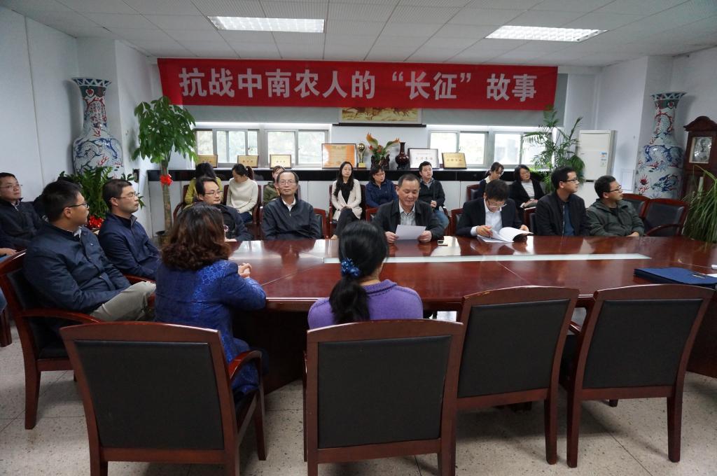 2017年10月25日下午2:30,在逸夫楼3036室,学院邀请到王酉亭之子王德先生作抗战中南农人的“长征”故事报告,学院党委书记范红结、副书记熊富强及全院教职工参加了报告会。
