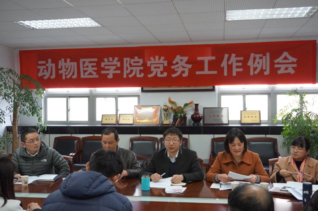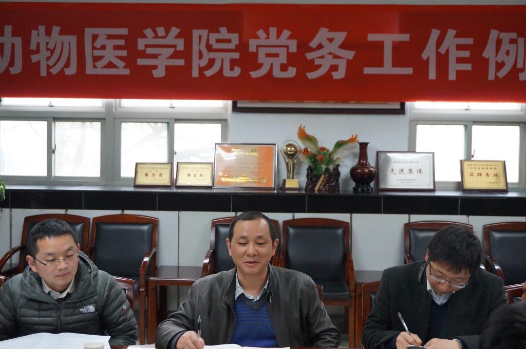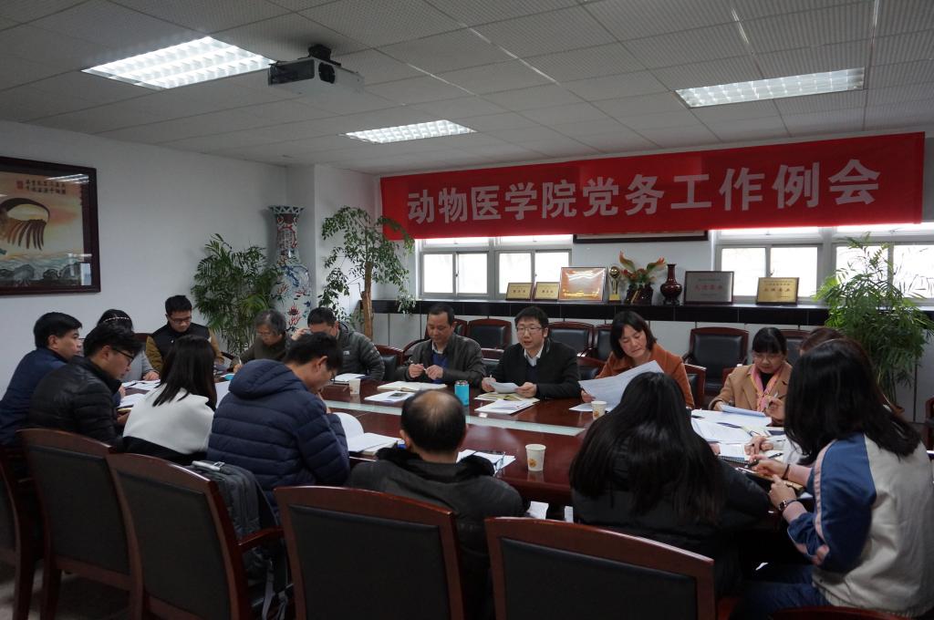 3月10日下午16:00,动医院党委在逸夫楼3036室会议室召开新学期党务工作例会,安排部署深化开展在“两学一做”学习教育中召开专题组织生活会和民主评议党员工作。会议由党委副书记熊富强主持,党委书记范红结、全体党支部书记参加了本次会议。