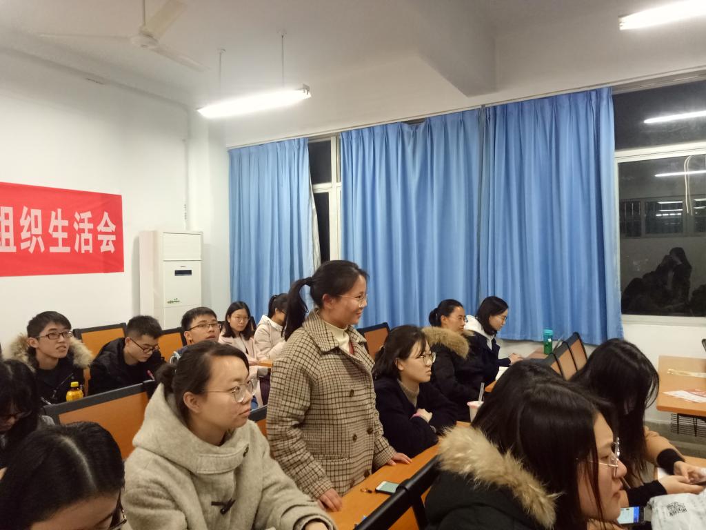 会议第二项,由党员及预备党员针对自己的个人情况进行反思,进行自我批评与总结。大五党员说:“自己大四后半学期到现在将近一年半的时间都奉献给了科研,不断接触到新的东西,使自己感觉特别充实,但是与同学们除了学习之外的交流,少了许多。交流和沟通特别重要,自己现在是动医174的下班党员,希望能与学弟学妹们多沟通,帮助他们尽快向党组织靠拢。”吕丽蕾反映,自己做了党员,但是感觉没有做什么实质性的东西来影响周围同学。针对她的这一疑问,臧老师回答道,你感觉自己没做什么,但其实你的一言一行都已经影响了周围的人,给周围人做了榜样,传递了正能量,这是一种微小但绝不微弱的力量。还有党员反映,上次组织党员们一起看雨花台话剧很有震撼力,希望院里可以多组织这样的活动,比如一起去看爱国电影,一起看话剧等等。