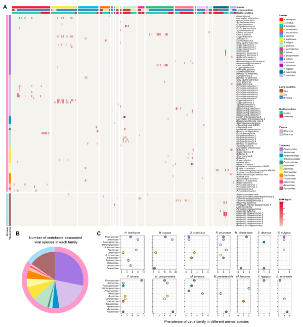 图1:野生动物中携带的与脊椎动物相关的病毒