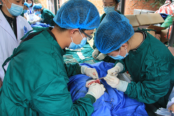 参加本次大赛一共有12个小组,本次外科手术大赛的内容是:羊的瘤胃手术比赛满分为55分。评判内容包括手术前的准备、手术过程的完成、手术后的整理等项目。比赛要求选手们在保证手术质量的前提下,尽可能快的完成比赛。