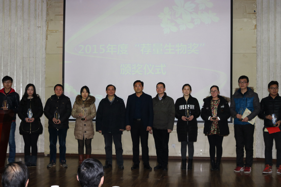 大会分为三个阶段。范红结主持了第一阶段会议,分别由范红结和马海田做2015年中层干部年终考核测评报告。熊富强主持第二阶段年度工作总结汇报。范红结、马海田、曹瑞兵、周继勇分别就2015年分管工作情况向全体教职工做了汇报。曹瑞兵主持第三阶段的WilliamHill中文官方网站2015年度总结表彰大会。贾晓庆等5名教职工,鲍泽坤等4名学生获“荐量生物奖”;赵茹茜等2名教授获“金南农-科技成果奖”,谢星等2名学生获“金南农-未来之星奖”;刘斐、黄克和、沈向真教授分获“2015年绩效奖”金、银、铜奖。戴建君副校长、范红结书记、周继勇院长、马海田处长、刘瑞平总经理、张继兵总经理分别为获奖师生颁奖。刘永旺、刘菲等两名教师代表获奖教师发言,张振超、杨卉新两名同学代表获奖同学做了发言。