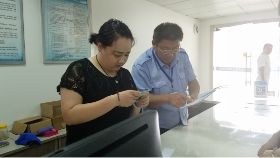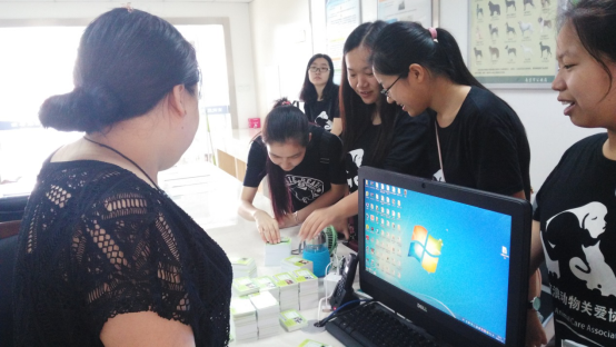 服务站工作人员在查看狗证的资料,确保资料的正确、完整。
