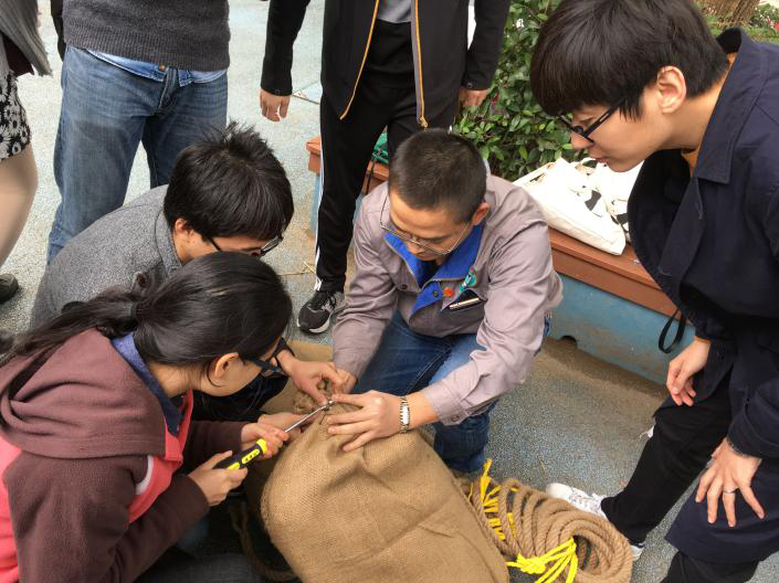 宣誓结束后,全体党员分两组进行了丰容物品的制作与鸟类知识的宣传及游客互动。研究生党员在动物园党员的带领下学习制作丰容物品,用于丰富野生动物的生活,满足野生动物的精神需求。鸟类知识宣传通过悬挂图片,图片中间穿插动物谜语与游客互动,对广大游客进行了“关爱动物,关爱地球”的宣传。