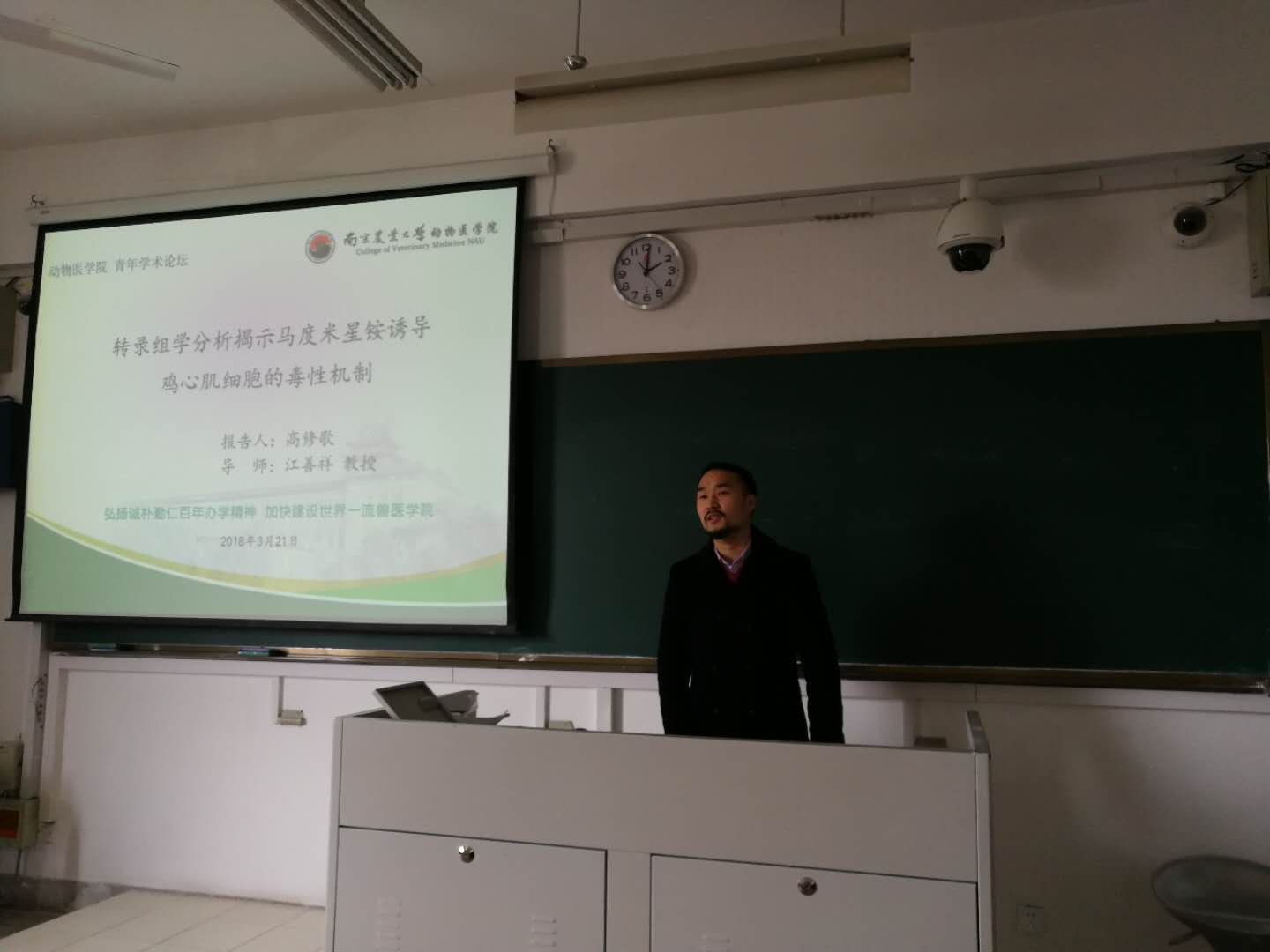 首先,博士生高修歌以《转录组学分析揭示马度米星铵诱导鸡心肌细胞的毒性机制》为题,探讨抗球虫强效药马杜霉素对鸡心肌细胞的毒性作用。实验证明马杜米星铵显著改变鸡心肌细胞内基因转录谱,干扰心肌细胞内离子平衡,引起心机细胞严重空泡化,还可能通过炎症及细胞凋亡途径致心肌细胞毒性。
