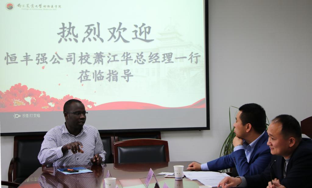 4月18日上午11点,恒丰强生物技术有限公司总经理萧江华、上海海禾实业(国际)有限公司总经理刘志刚一行4人来WilliamHill官网洽谈产学研合作事宜。WilliamHill官网党委副书记熊富强、教授李祥瑞、研究生教学秘书张幸星,以及部分国际留学生代表参与了本次洽谈会。