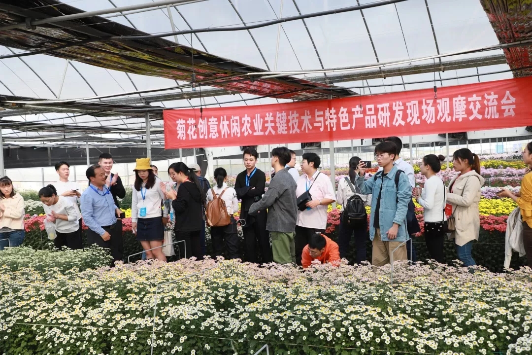 在所有赛程结束后,10月24日下午,大赛组委会带领所有参赛师生前往湖熟菊花基地进行了参观考察。该基地占地120多亩,保存了5000多份菊花资源、3000多个品种,其中由南农自主培育的造型、颜色各异的菊花新品种300多种,是中国菊花种质资源保存中心,也是目前世界最大的菊花基因库。