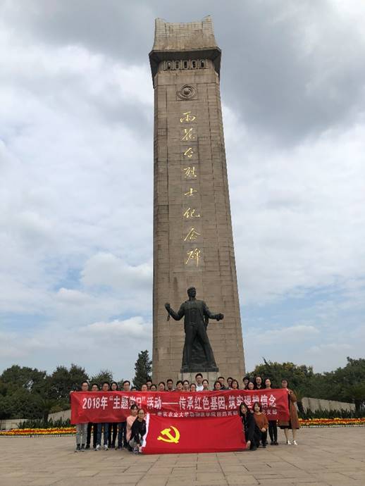 随后我们瞻仰了雨花台烈士纪念碑,在烈士纪念碑下,在张宇航同志的带领下,全体党员面对党旗,庄严宣誓,重温入党誓词,把党员的使命、责任与义务牢记于心。