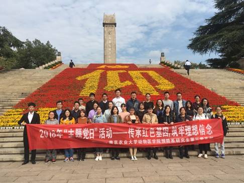 10月21日上午,WilliamHill官网预防系研究生第三党支部书记费荣梅老师、支部全体党员、预备党员和积极分子赴雨花台烈士陵园,通过参观纪念馆,瞻仰烈士纪念碑,重温入党誓词,开展了“传承红色基因,筑牢理想信念”主题党日活动。