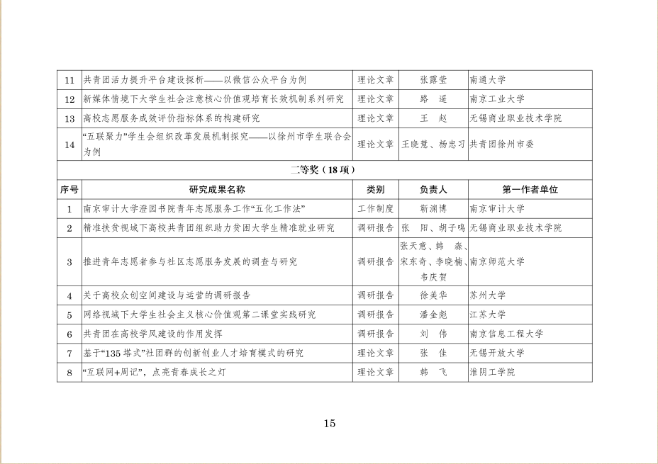 此前,熊富强牵头完成的研究成果已获评2015年度江苏省学校共青团优秀研究成果二等奖1项。