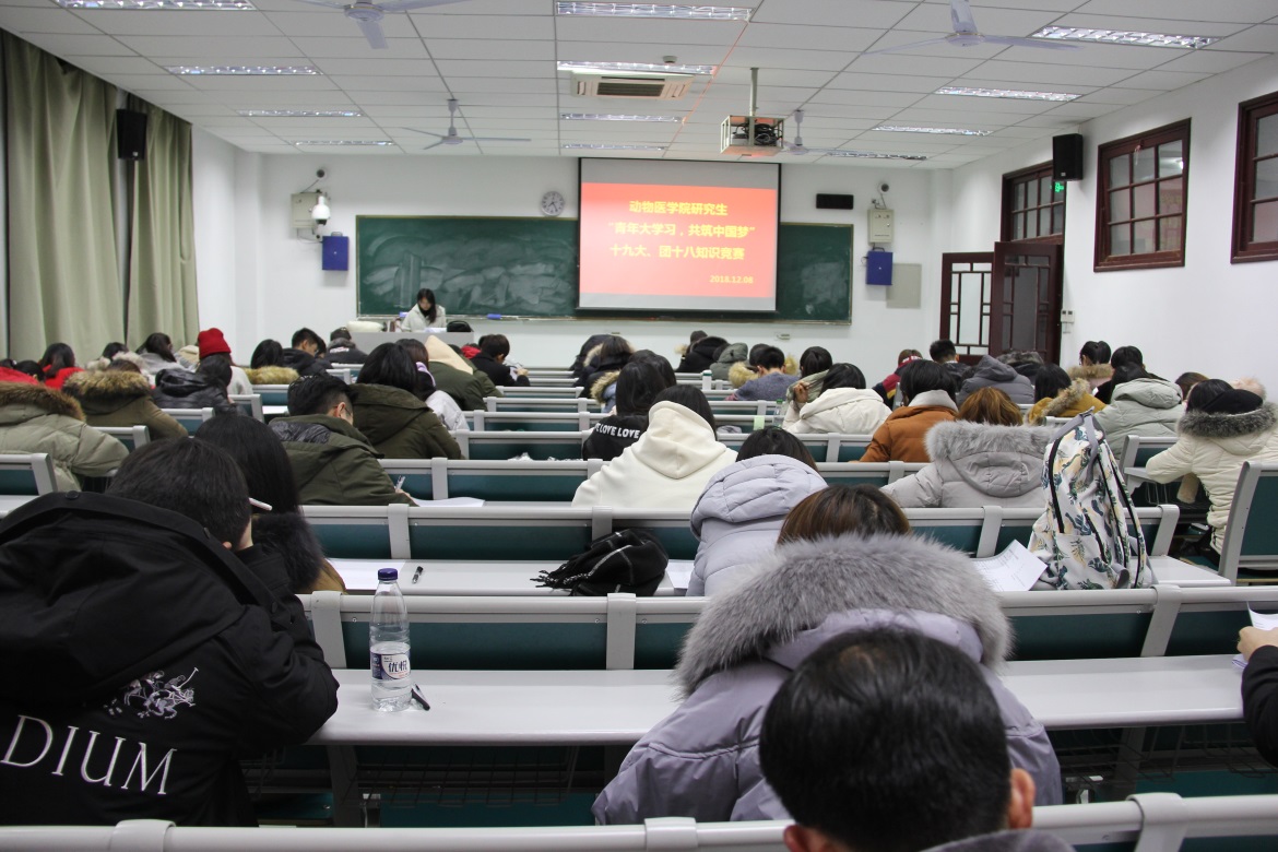 为了在研究生群体中掀起学习宣传贯彻党的十九大、团的十八大等会议精神热潮,引导广大研究生把思想和行动统一到党的十九大、团的十八大精神上来,结合学校《关于举办研究生学习党的十九大、团十八大精神知识竞赛暨信仰公开课的通知》相关要求,研究生工作部特举办研究生学习党的十九大、团十八大精神知识竞赛活动。12月8日晚,WilliamHill官网于主楼102教室成功举行了“青年大学习,共筑中国梦”党的十九大、团十八大知识竞赛活动,此次活动共计93名研究生参加。