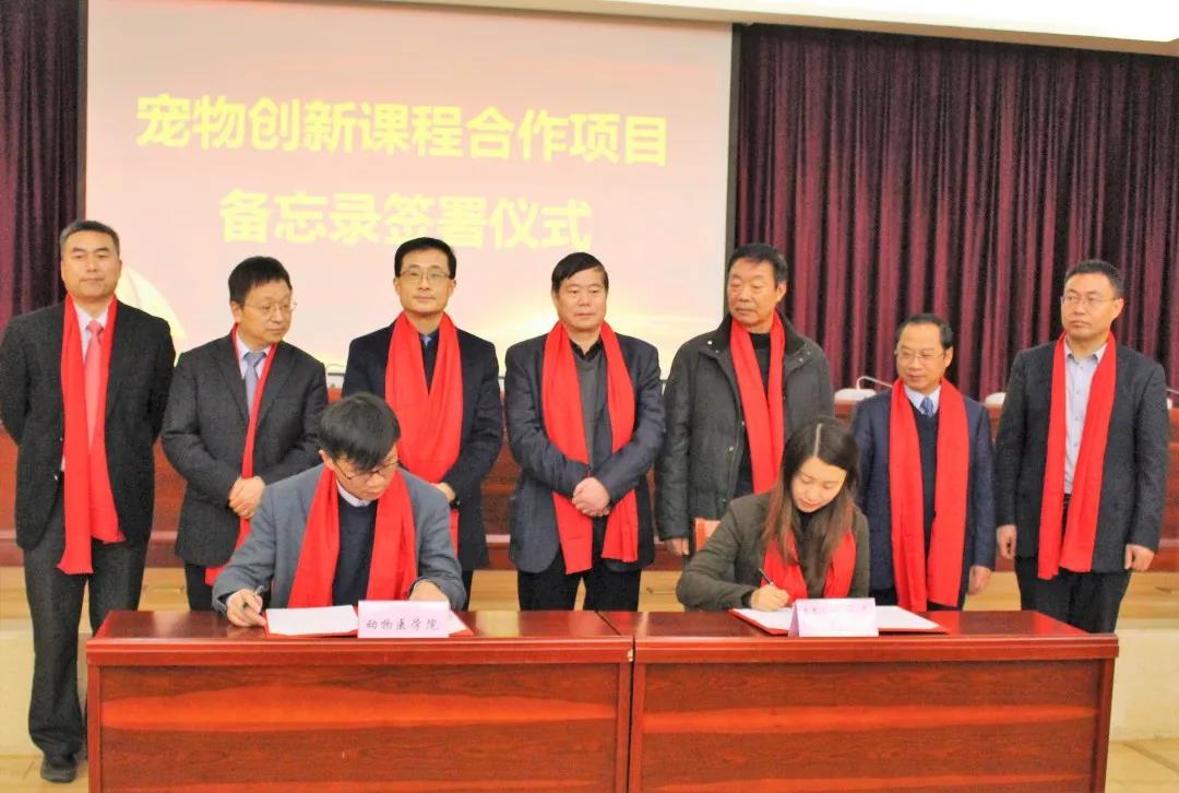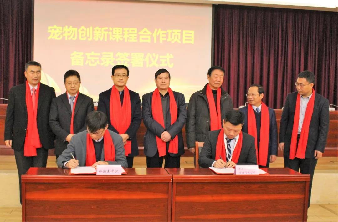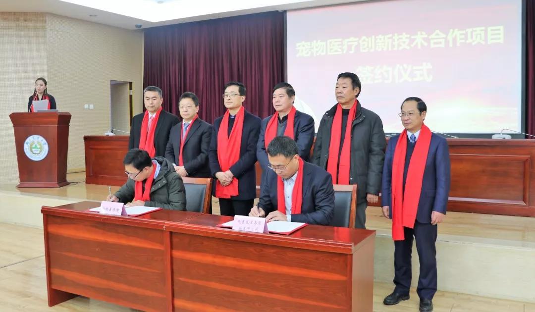 南京睿嘉宠物用品有限公司总经理勾连军与院方代表苗晋锋签署合作协议