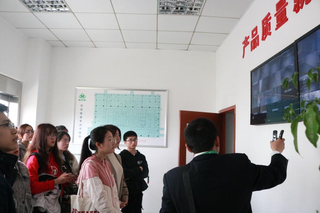 3月28日,辅导员李欣欣和兼职辅导员邹剑文带领着第一组的同学,来到了南京天邦生物科技有限公司。同学们最先来到公司广场,并由接待讲解人员带入公司大院,了解公司文化而后在公司楼前合影。随后在讲解员的带领下,同学们来到了疫苗车间,由于是无菌环境,同学们在厂房门口通过监控了解厂内的生产过程,并由车间主任负责讲解。接着,大家沿公司内的主路依次参观了灭毒车间、动物房等。
