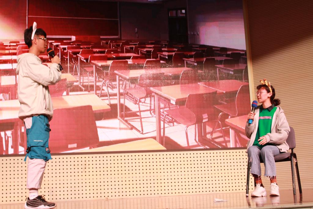 第二部分,动医172班刻画的人物形象,在家人的阻拦下,坚持在动医路上远行的故事鼓舞了全场;