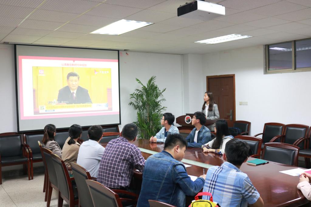 随后,李欣欣围绕主题“让青春在新时代绽放”,从“五四青年节的由来”、“五四精神”以及“习近平总书记对新时代青年提出的六点希望”三个方面展开分享,并通过观看习近平总书记在纪念五四运动100周年大会上的重要讲话片段,引发学生思考。
