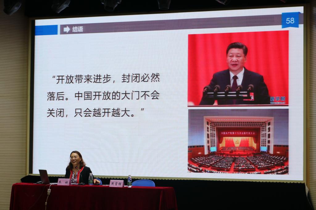 朱娅老师紧密围绕“一带一路”的提出与发展过程,结合当前中美贸易战的热点问题,详细介绍了我国的经济发展历程,为同学们展开了一幅别样的历史图卷。