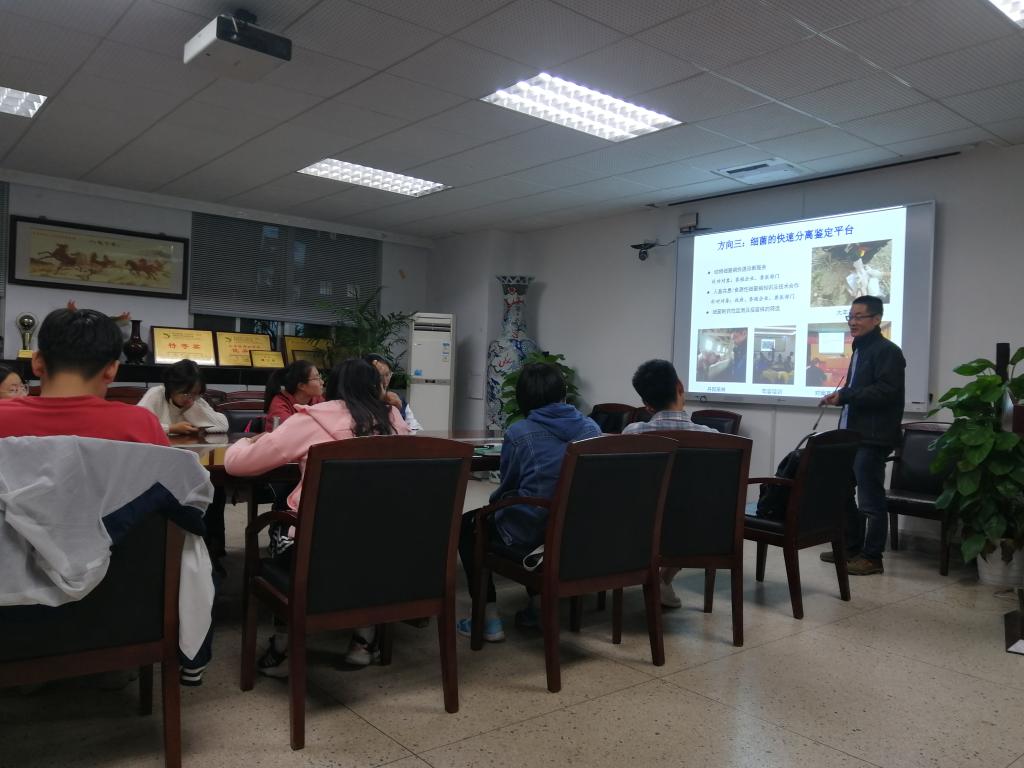 11月7日,庾庆华老师在逸夫楼3044召开了一场别开生面的新生研讨课讲座,介绍了肠道菌群与动物健康养殖的相关内容。大一萌新们都认真听讲,热情参与。