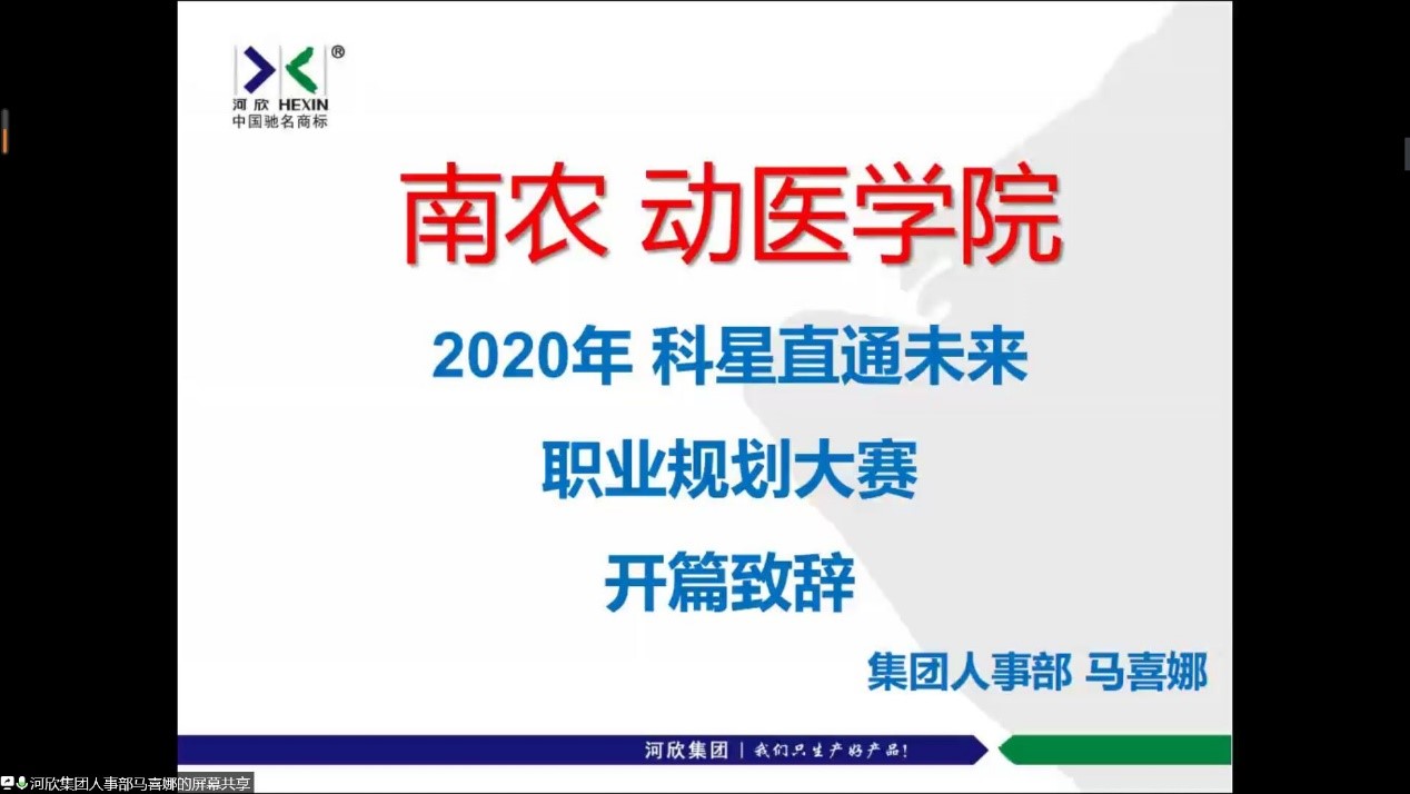 5月15日,WilliamHill官网外联与生涯促进部与学习部通过腾讯会议平台成功举行了由河北科星药业有限公司赞助的动医院第二届“科星直通未来”生涯规划大赛。本次活动有幸邀请到河欣集团人事部经理马喜娜,科星药业企划部总监梁志刚,农学院团委书记王彬,园艺学院团委副书记夏丽,食品科技学院团委副书记陈宏强以及本院团委书记金洁南六人为我们的选手点评。