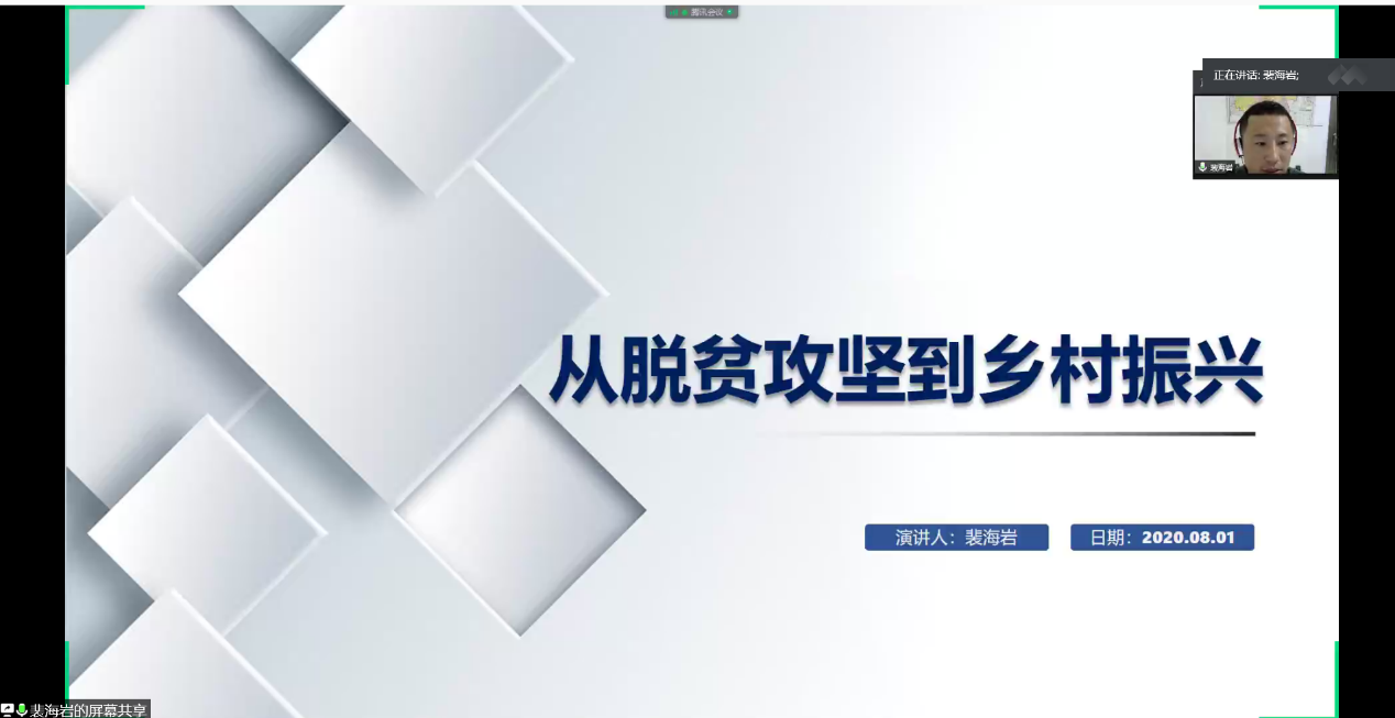 首先,任职贵州省麻江县金竹街道河山村第一书记的裴海岩同志,进行了“从脱贫攻坚到乡村振兴”的主题报告。裴书记从党的脱贫攻坚的总方略讲起,介绍了河山村的人口数据、贫困数据等基本概况,详细介绍了党建扶贫、产业扶贫、智力扶贫、教育扶贫等多措并举、综合施策的脱贫攻坚战略,结合裴书记自身的工作经历及william威廉中文官网对麻江县的定点结对帮扶工作,为同学们讲解了脱贫攻坚、乡村振兴的基本阶段与工作内容。