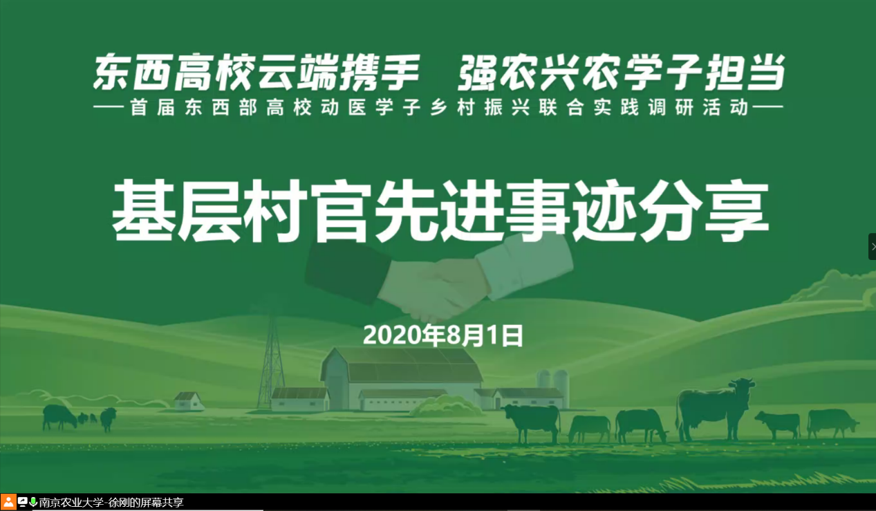8月1日下午,由WilliamHill中文官方网站发起,联合东西部7所涉农高校共同开展的“东西高校云端携手,强农兴农学子担当”首届东西部高校动医学子乡村振兴联合实践调研活动,进行了线上的基层村官先进事迹分享会活动。三位基层村官讲述他们实地工作中与脱贫攻坚、乡村振兴的故事,分享会由辅导员徐刚主持。