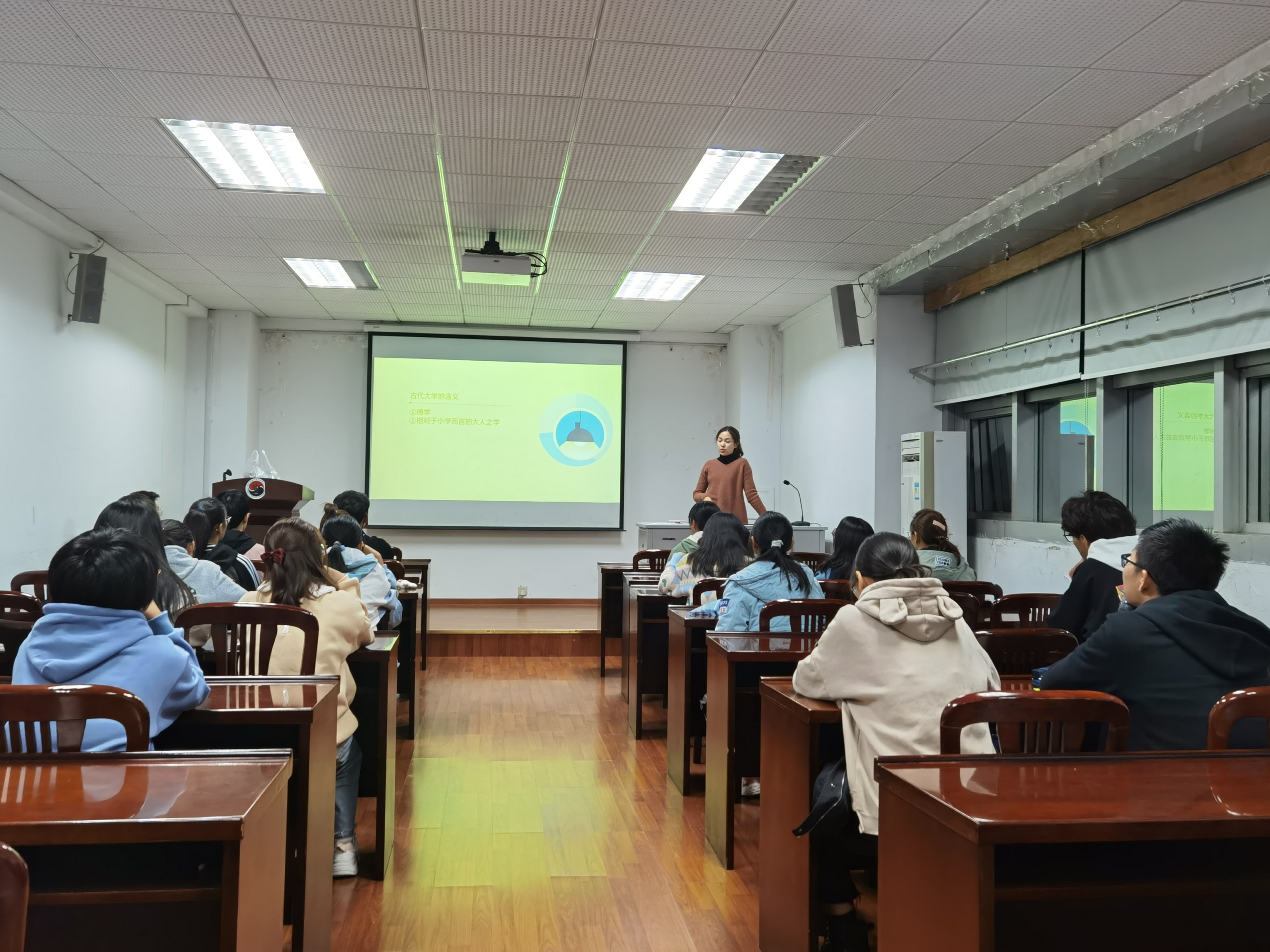 11月4日,汪明佳老师在逸夫楼3044开展了一堂别开生面的新生研讨课,教给了迷茫的大一萌新们如何探寻大学生活的意义。